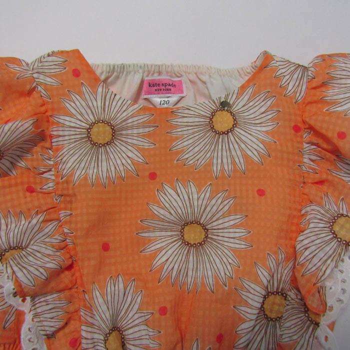 ケイトスペード ワンピース ノースリーブ ブランド トップス キッズ 女の子用 120サイズ オレンジ×ホワ...