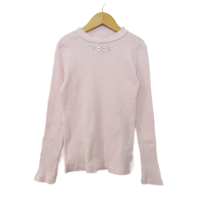 メゾピアノ 長袖Tシャツ リブ ストレッチ ブランド トップス キッズ 女の子用 140サイズ ピンク Mezzo Piano 【中古】