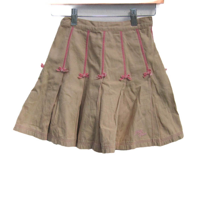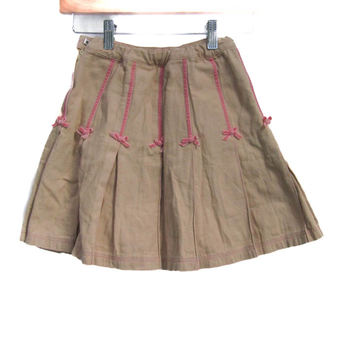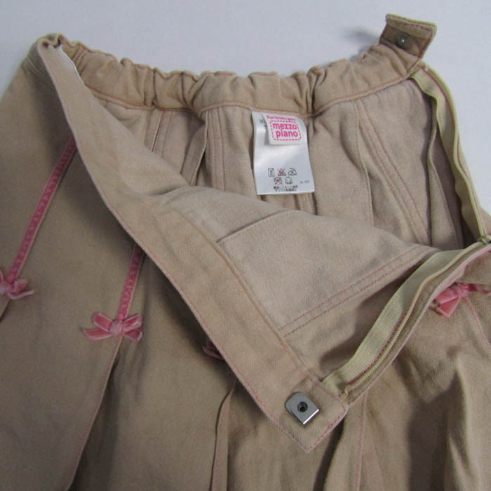 メゾピアノ プリーツスカート コットン100% ブランド ボトムス キッズ 女の子用 140サイズ ベージュ×ピンク Mezzo Piano 【中古】