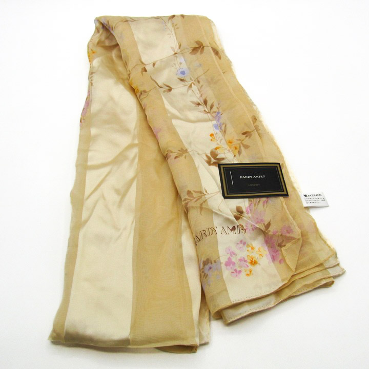 ハーディエイミス ストール 未使用 スカーフ 花柄 シルク ブランド 小物 レディース イエロー Hardy Ami...