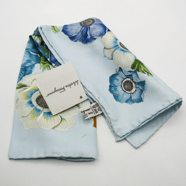 サルヴァトーレフェラガモ スカーフ 未使用 花柄 シルク イタリア製 ブランド 小物 レディース ブルー S...