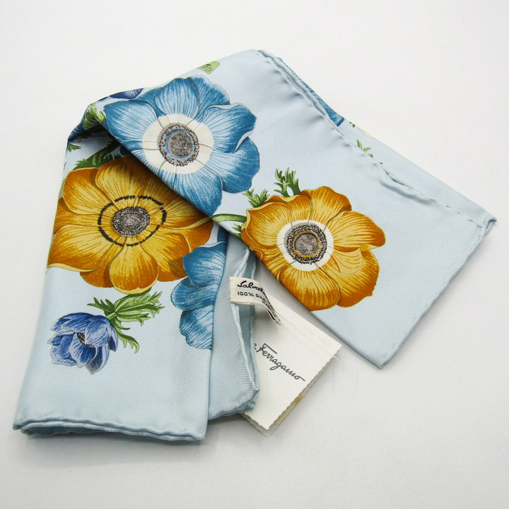 サルヴァトーレフェラガモ スカーフ 未使用 花柄 シルク イタリア製 ブランド 小物 レディース ブルー Salvatore Ferragamo 【中古】