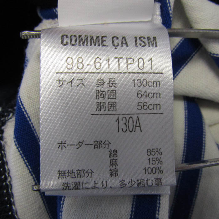 コムサイズム 半袖Tシャツ 未使用 トップス ボーダー 女の子 キッズ 男の子用 130Aサイズ ホワイト/ネイビー COMME CA ISM 【中古】