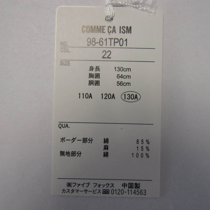 コムサイズム 半袖Tシャツ 未使用 トップス ボーダー 女の子 キッズ 男の子用 130Aサイズ ホワイト/ネ...