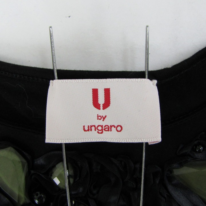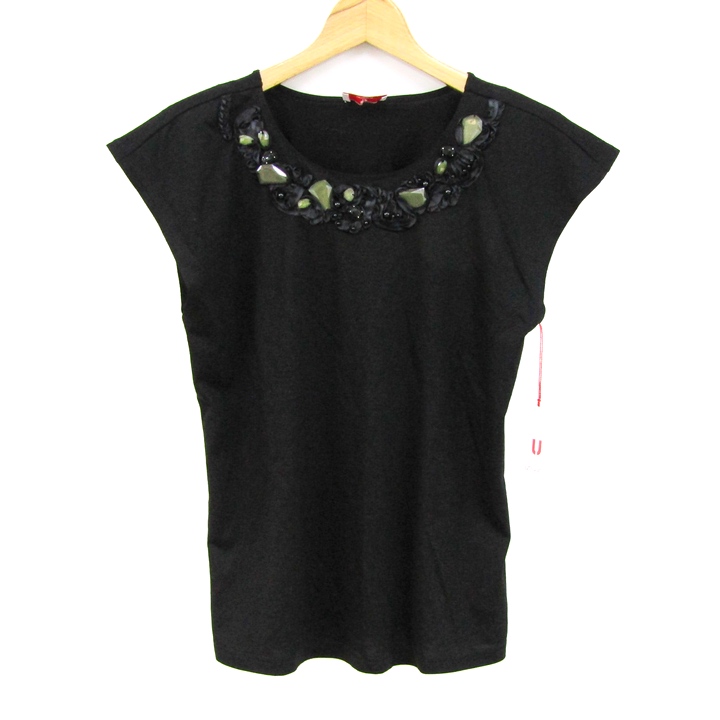 ユーバイウンガロ 半袖Tシャツ トップス フレンチスリーブ ビジュー 日本製 未使用品 レディース Mサイズ ブラック U by ungaro 【中古】