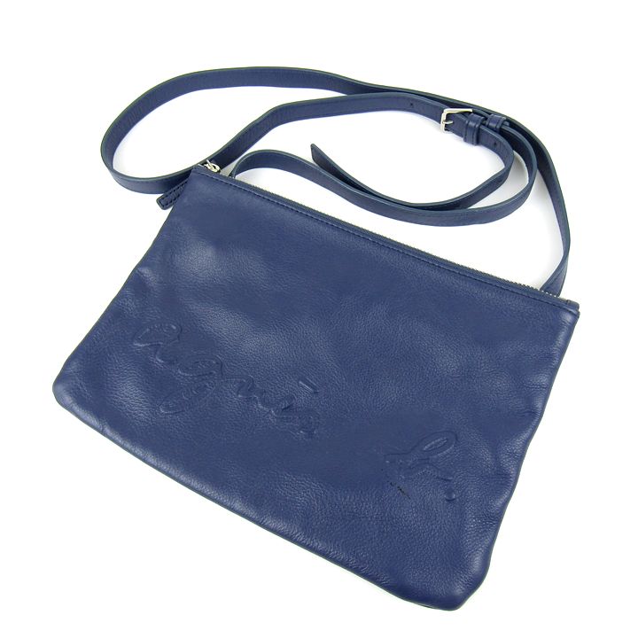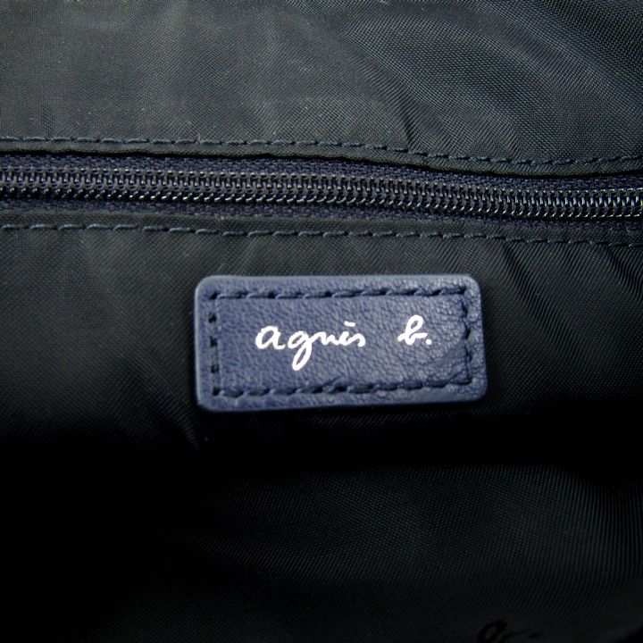 アニエスベー ショルダーバッグ レザー ビッグロゴ 鞄 カバン ブランド レディース ネイビー agnes b. 【中古】