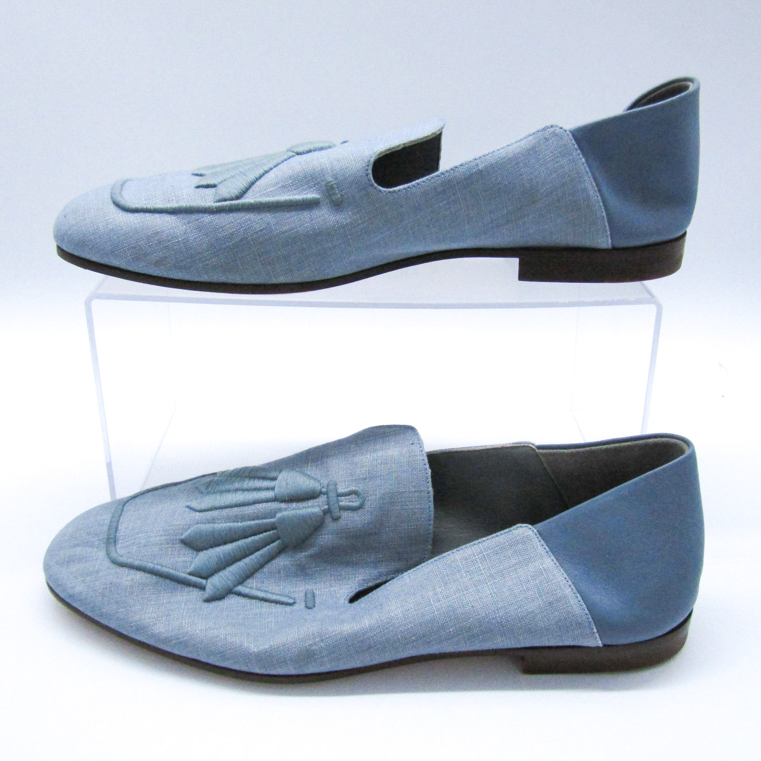 マックスマーラ ローファー スリッポン タッセル ブランド シューズ 靴 イタリア製 レディース 37.5サイズ 水色 MAX MARA 【中古】
