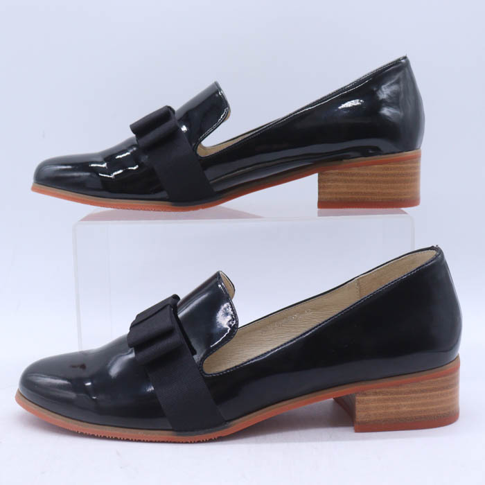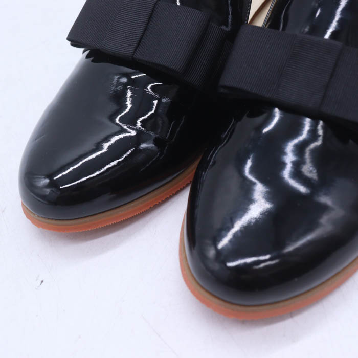 オリエンタルトラフィック ローファーパンプス 大きいサイズ エナメル リボン 靴 レディース 42サイズ ブラック ORiental Traffic 【中古】