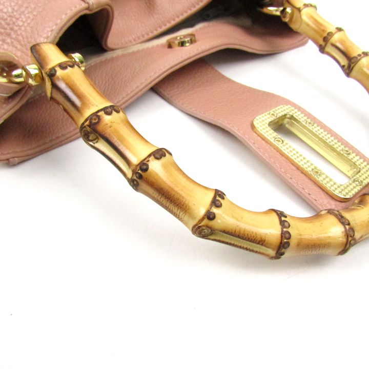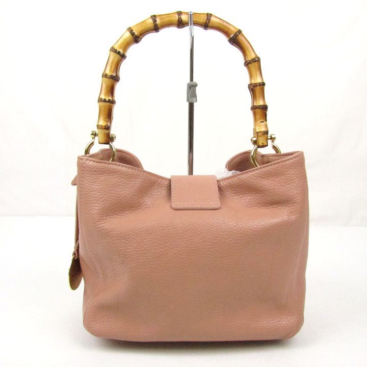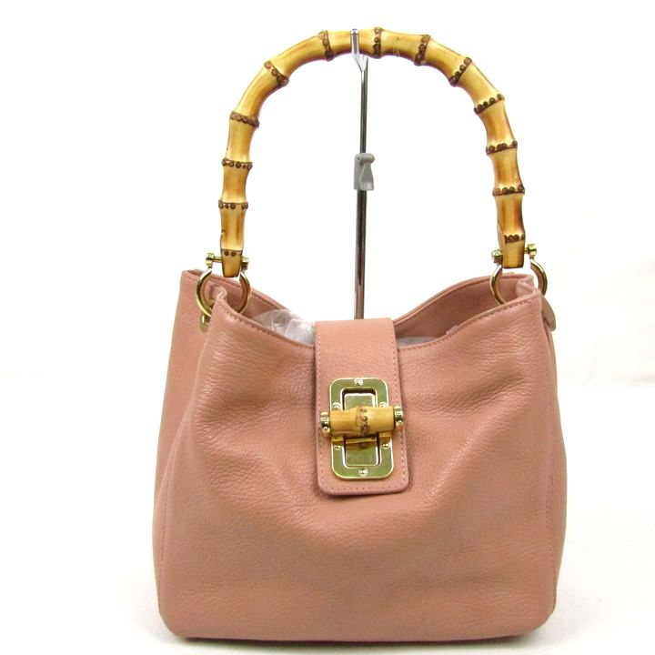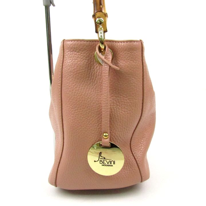 ベビーニ ウッドハンドル ハンドバッグ レザー イタリア製 鞄 ブランド レディース ピンク BEVINI 【中古】