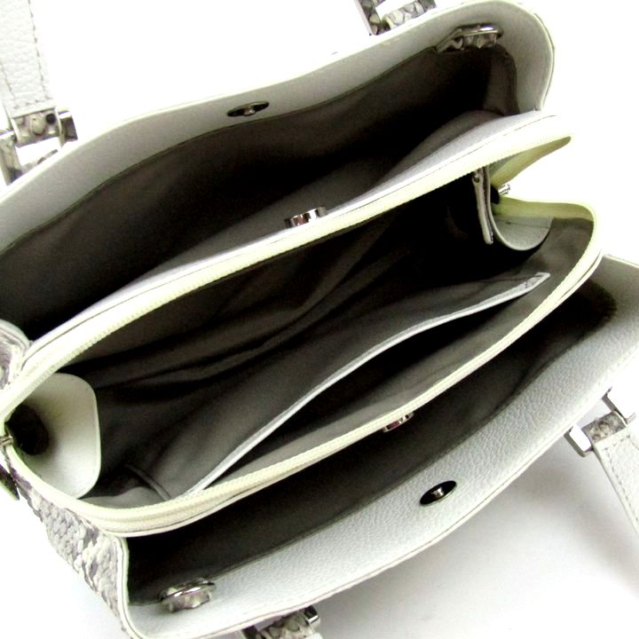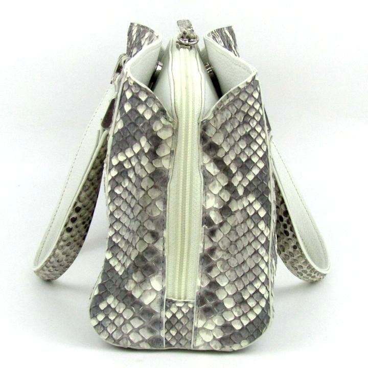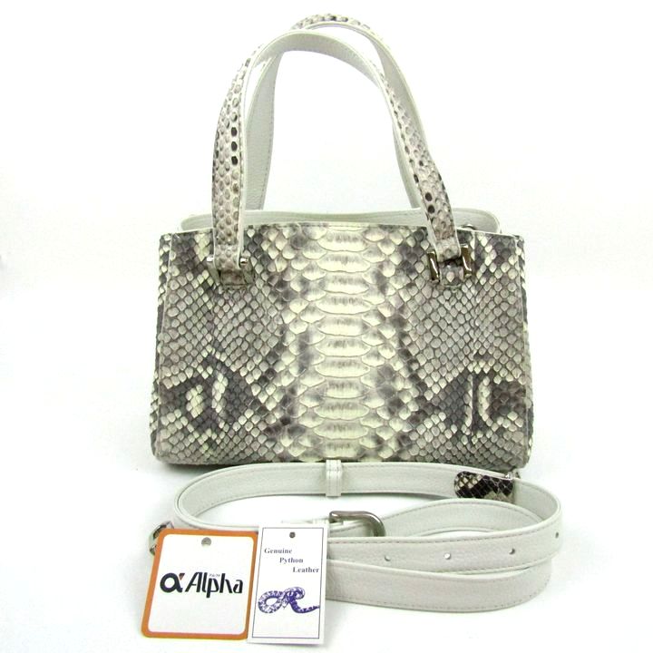 アルファ パイソン レザー トートバッグ ショルダーバッグ 2way 本革 鞄 ブランド レディース ホワイト グレー ALPHA 【中古】