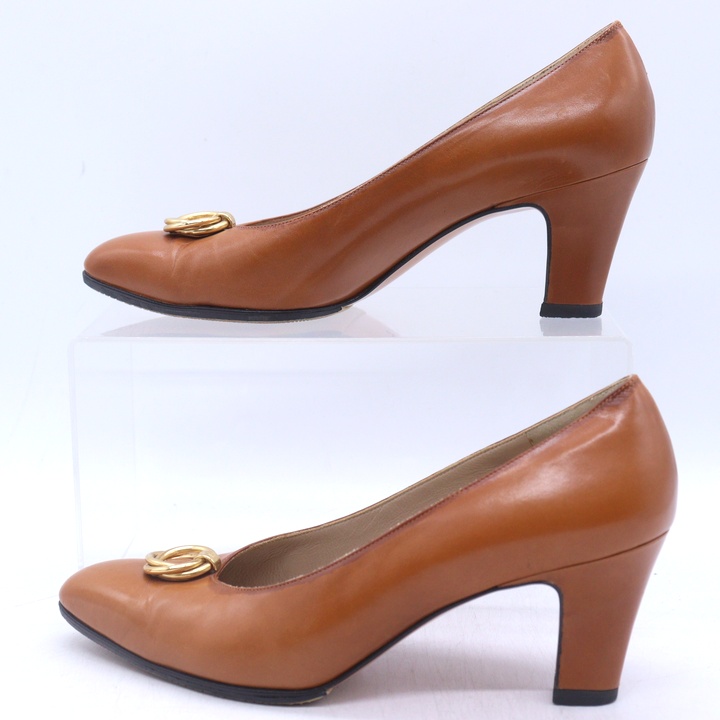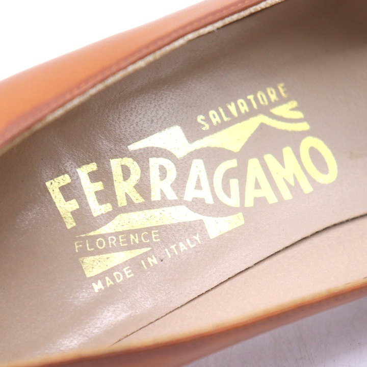 サルヴァトーレフェラガモ パンプス チャンキーヒール ブランド 靴 イタリア製 レディース 6サイズ ブラウン Ferragamo 【中古】