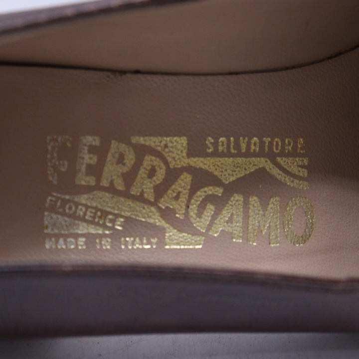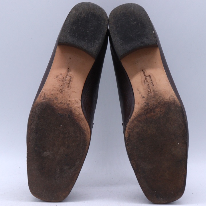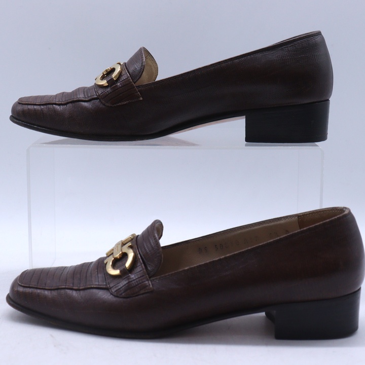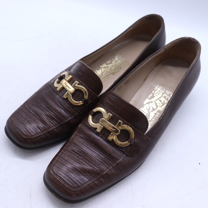 サルヴァトーレフェラガモ ローファー ガンチーニ リザード型押し スリッポン 靴 イタリア製 レディース 6.5サイズ ブラウン Ferragamo 【中古】