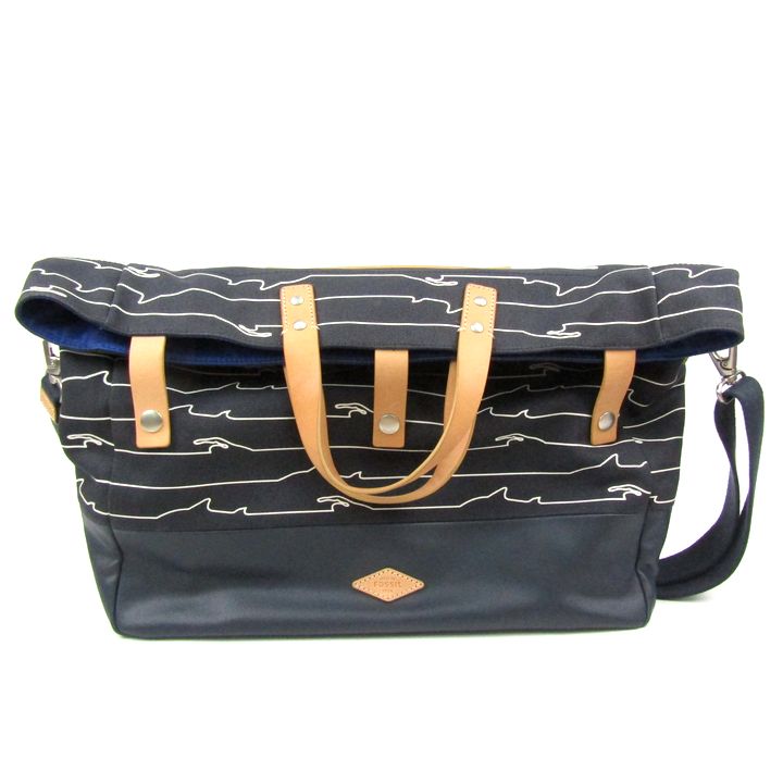 フォッシル トートバッグ ショルダーバッグ 波 2way 鞄 カバン ブランド レディース メンズ ネイビー FOSSIL 【中古】