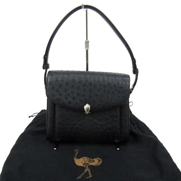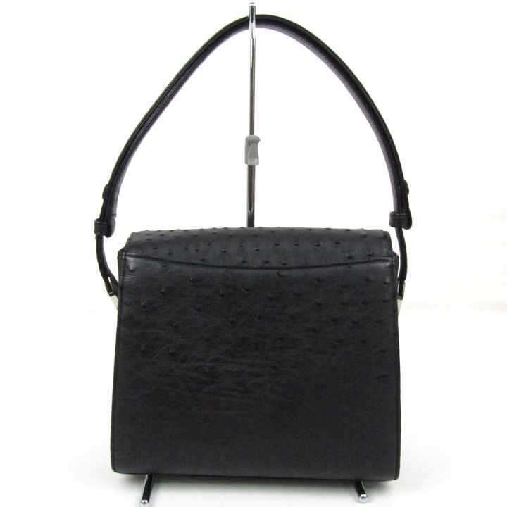 クラインカルー オーストリッチレザー JRA認定 ハンドバッグ 本革 鞄 ブランド レディース ブラック KKLK 【中古】