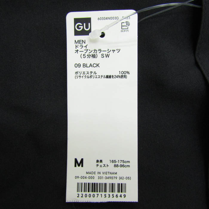ジーユー 半袖シャツ 未使用 331-349079 ドライオープンカラーシャツ トップス 黒 メンズ Mサイズ ブラ...