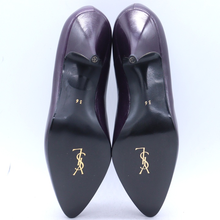イヴサンローラン パンプス アーモンドトゥ シューズ ブランド 靴 レディース 36サイズ パープル YVES S...