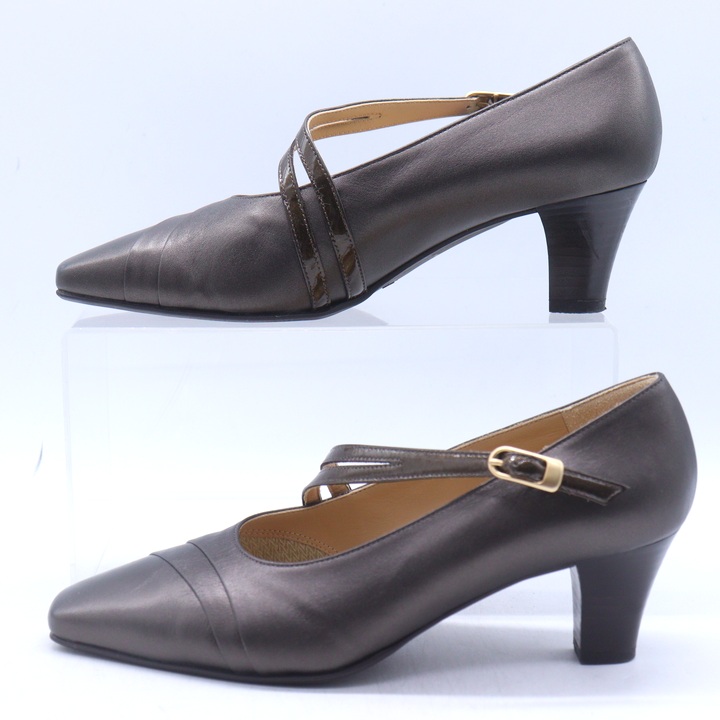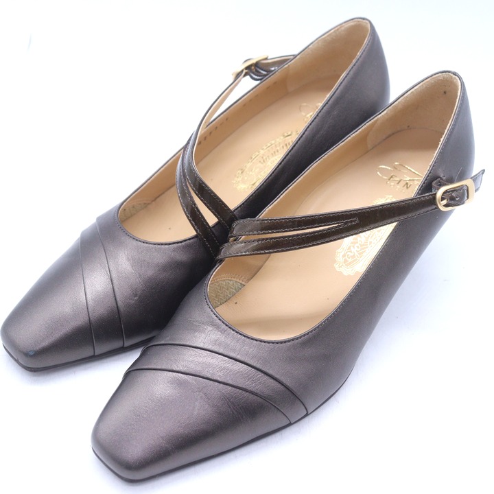 銀座ヨシノヤ パンプス スクエアトゥ シューズ ブランド 靴 日本製 レディース 22.5サイズ ブラウン Yoshinoya 【中古】