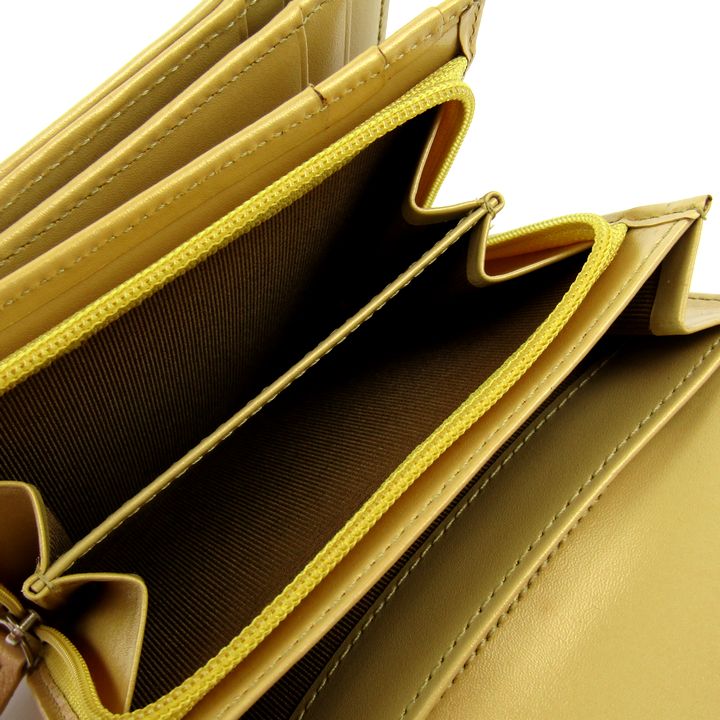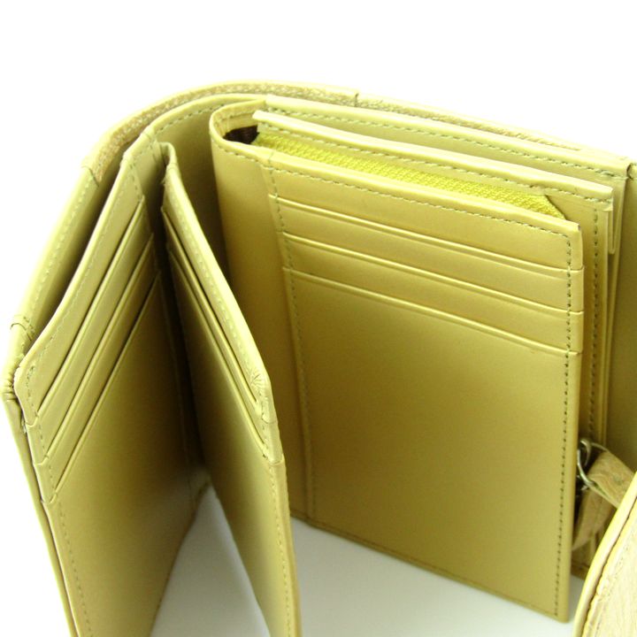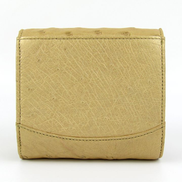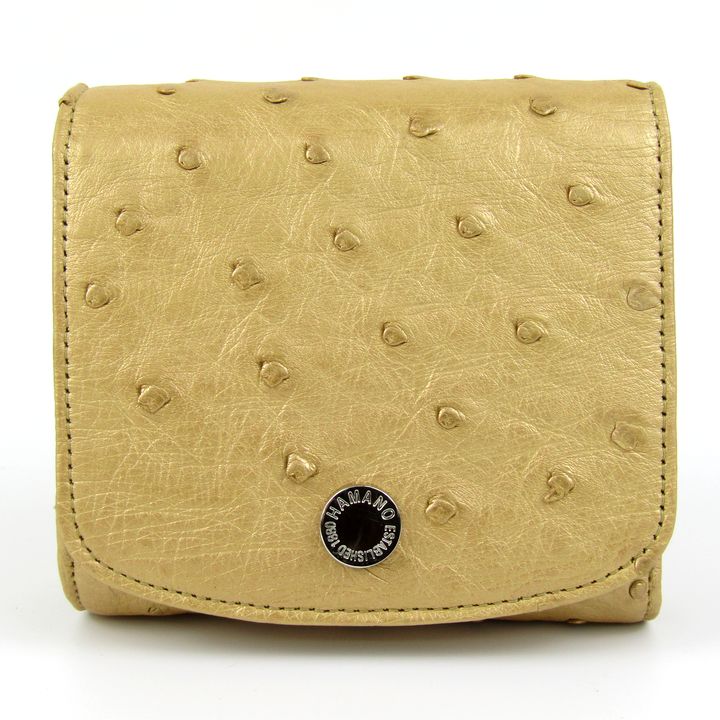 ハマノ 三つ折り財布 オーストリッチ レザー ウォレット ブランド レディース ゴールド HAMANO 【中古】