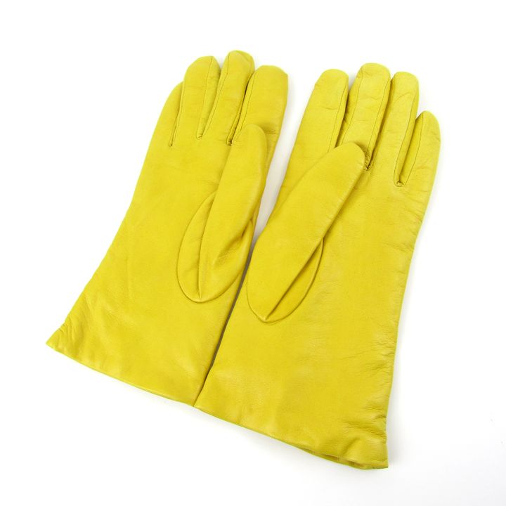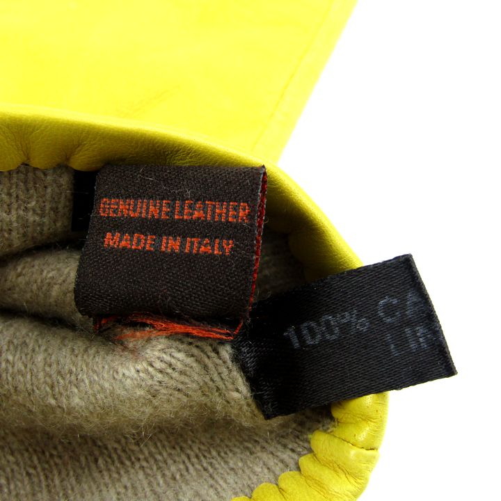 セルモネータグローブス 手袋 レザー グローブ カシミヤライナー ブランド レディース イエロー Sermoneta gloves 【中古】