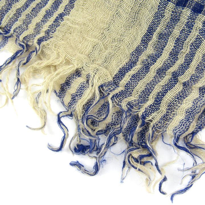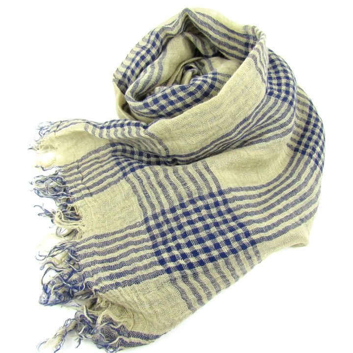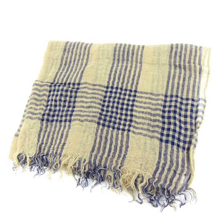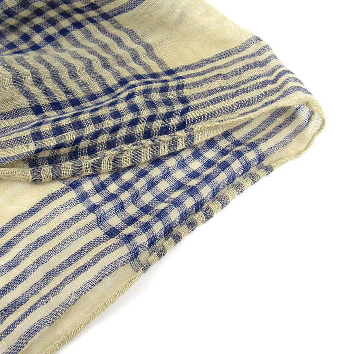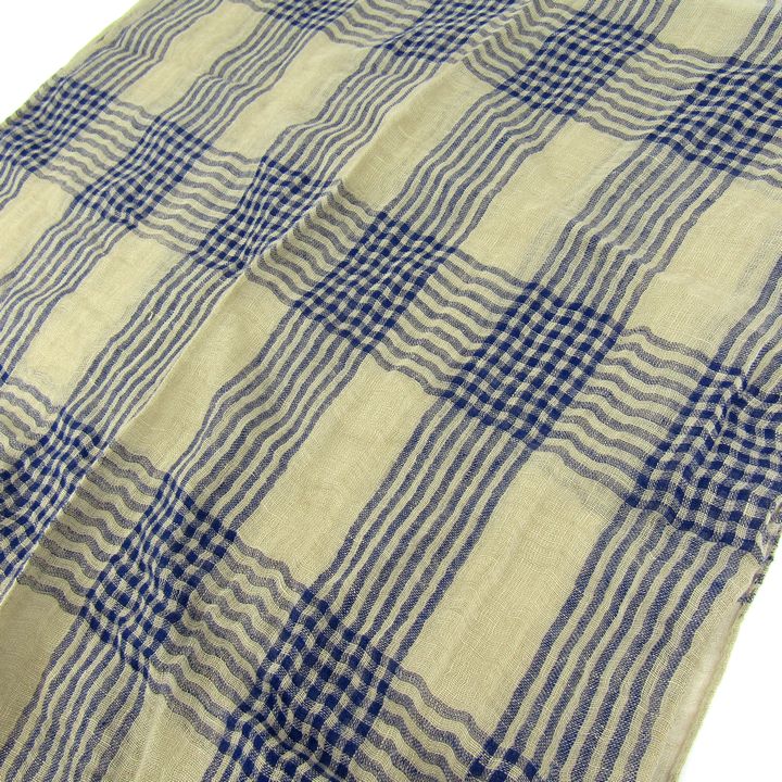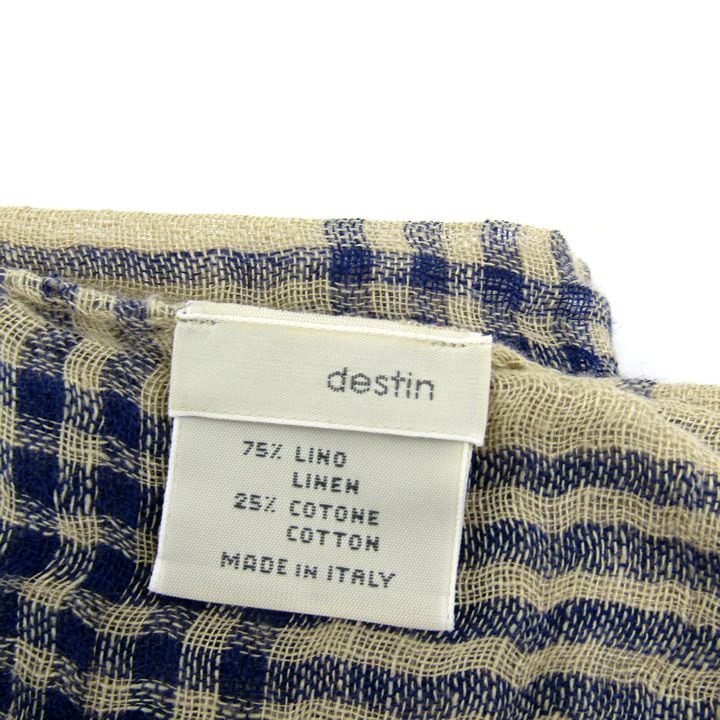 デスティン ストール リネン コットン チェック柄 イタリア製 ブランド レディース ベージュ ネイビー destin 【中古】