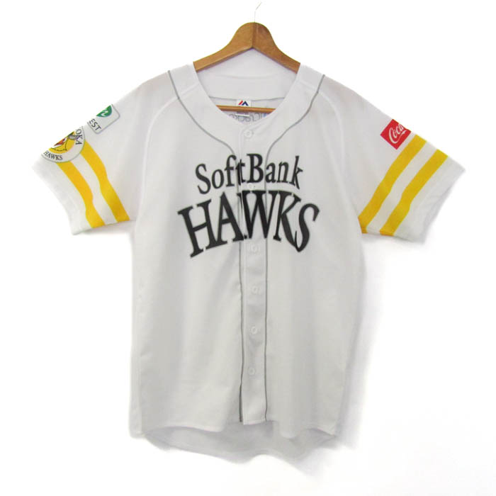 マジェスティック 半袖シャツ トップス 福岡ソフトバンクホークス 野球 ユニフォーム メンズ Lサイズ 白...
