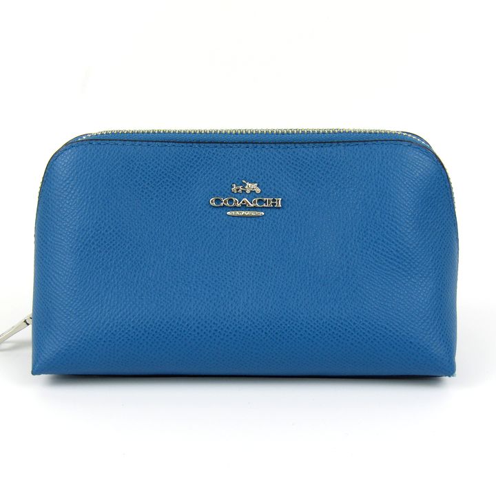 コーチ ポーチ レザー コスメポーチ マルチケース ブランド 小物 レディース ブルー COACH 【中古】