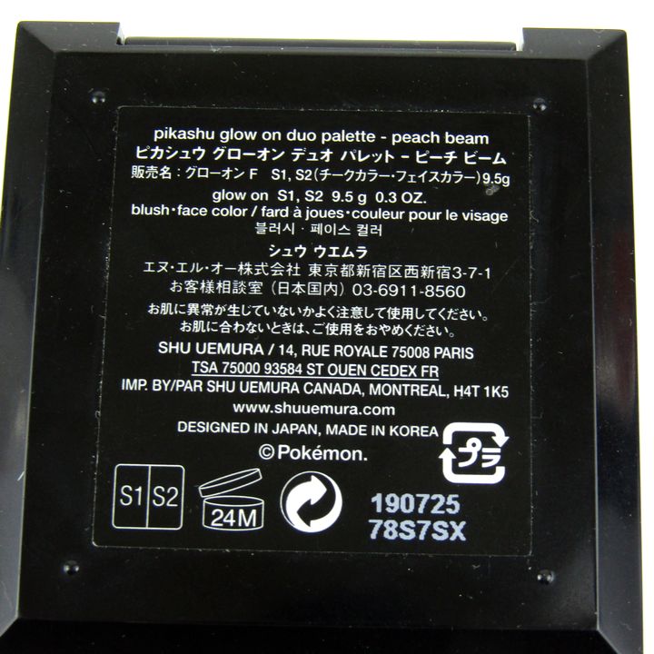 シュウウエムラ ピカシュウ グローオンデュオパレット ピーチビーム ポケモンコラボ 若干使用 ブラシ無し レディース shu uemura 【中古】