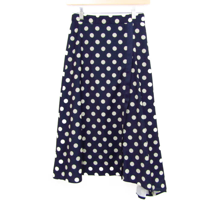 ナラカミーチェ ロングスカート ボトムス アシンメトリー ドット柄 未使用品 レディース 1サイズ 紺×ベ...