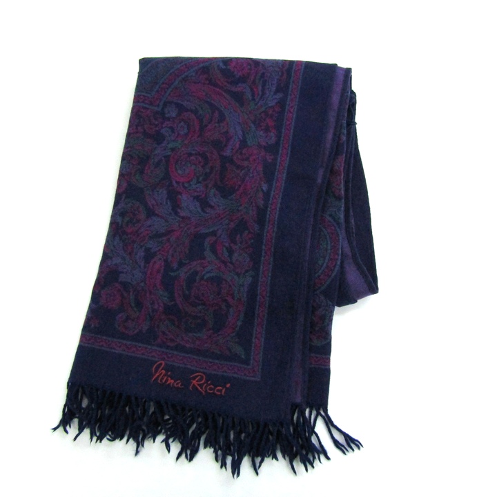ニナリッチ マフラー ペイズリー ウール カシミヤ混 ブランド レディース ネイビー/パープル NINA RICCI 【中古】