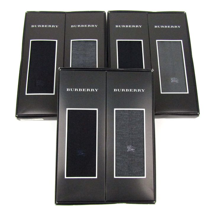 バーバリー 靴下 3点セット 未使用 25-26cm 6足入り ソックス ギフト ブランド まとめて 箱ダメージ有 メンズ BURBERRY 【中古】