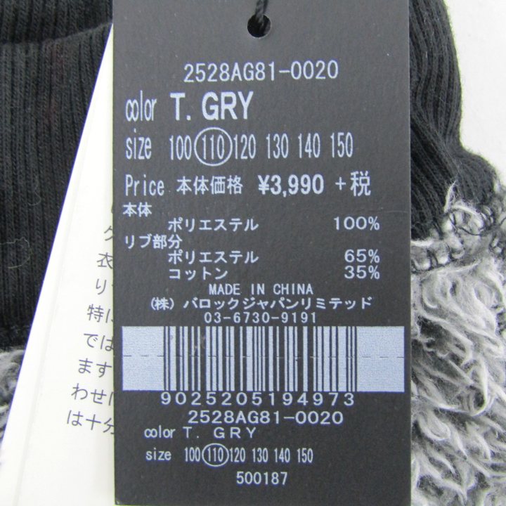 アズールバイマウジー ロングパンツ 未使用 ブランド ボトムス 黒 キッズ 男の子用 110サイズ ブラック×グレー AZUL by moussy 【中古】