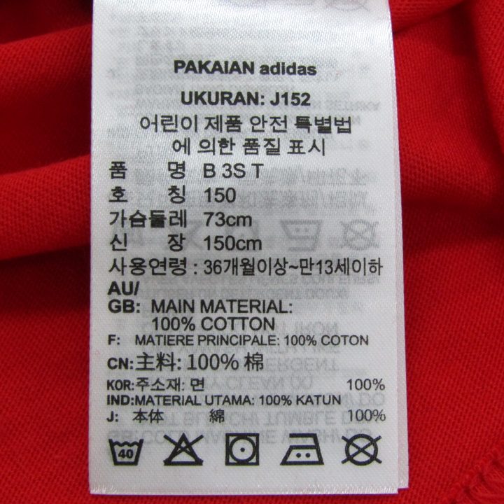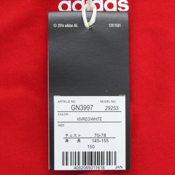アディダス 半袖Tシャツ 未使用 コットン100% スポーツウエア トップス 赤白 キッズ 男の子用 150サイ...