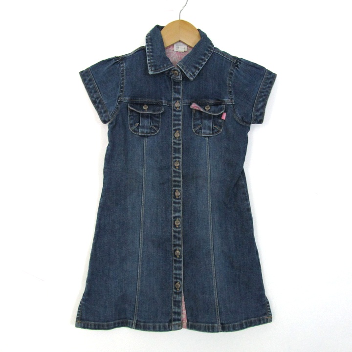 ギャップ デニムワンピース 半袖 ストレッチ ブランド トップス キッズ 女の子用 110サイズ インディゴ GAP 【中古】
