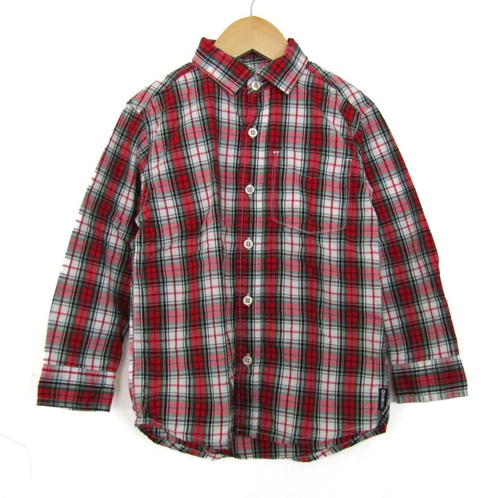 オシュコシュ 長袖シャツ コットン100% ブランド トップス 赤 白 キッズ 男の子用 5サイズ レッド×ホワイト×グリーン OSHKOSH 【中古】