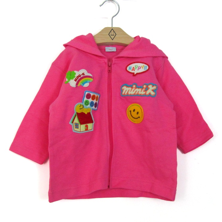 ミニケー パーカー 長袖 コットン100% トップス キッズ 女の子用 90サイズ ピンク MIKI-K 【中古】