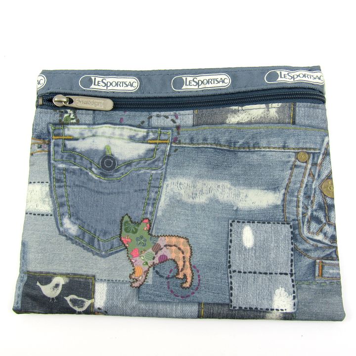レスポートサック ポーチ 2点セット スヌーピーコラボ/ネコ柄デニム マルチケース ブランド まとめて レディース LeSportsac 【中古】