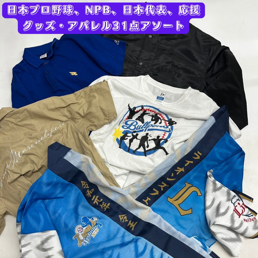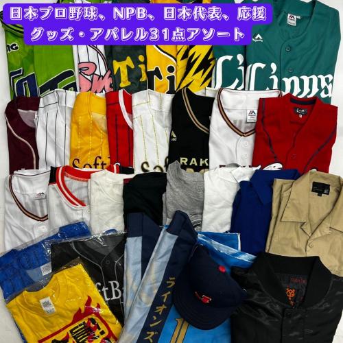 NPB(日本プロ野球)各球団の公式ユニフォーム、日本代表(Samurai Japan)グッズ、Tシャツ、応援タオル、キャップなどをミックスした31点アソートセットです。