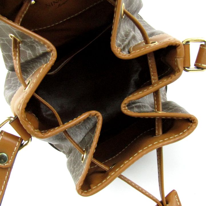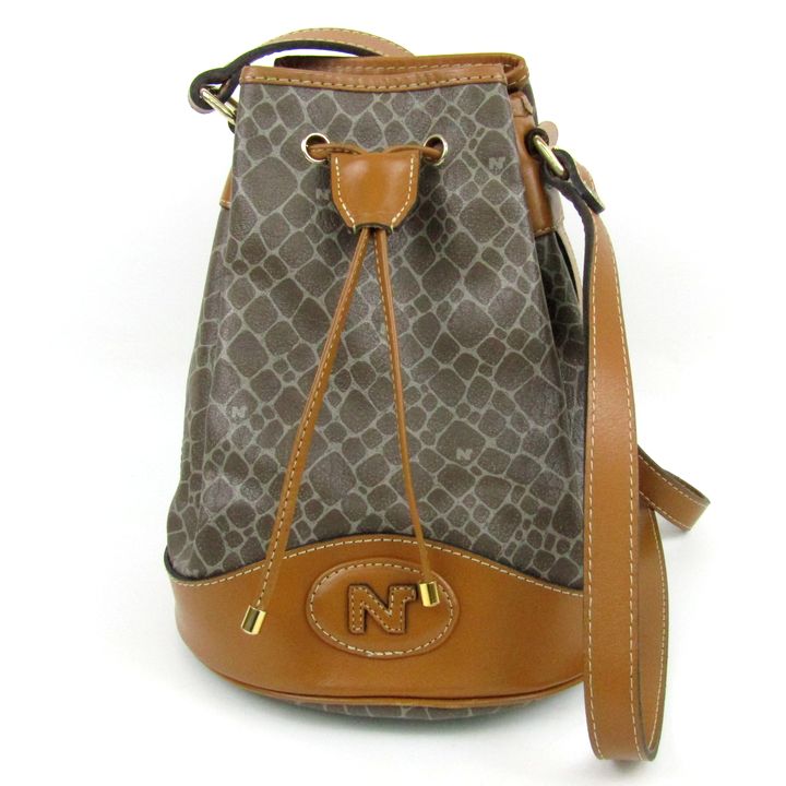 ニナリッチ ショルダーバッグ ジラフ柄 PVC レザー バケットバッグ 巾着 鞄 ブランド レディース ブラウン NINA RICCI 【中古】