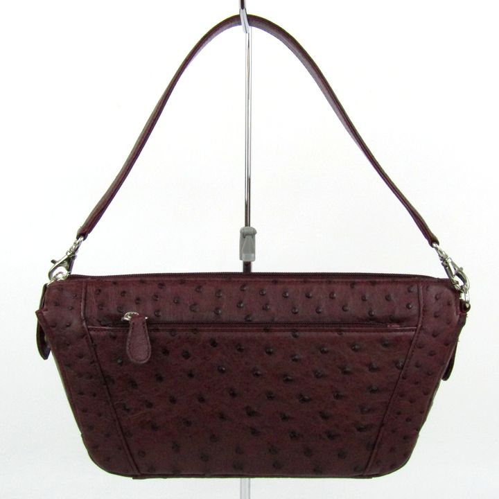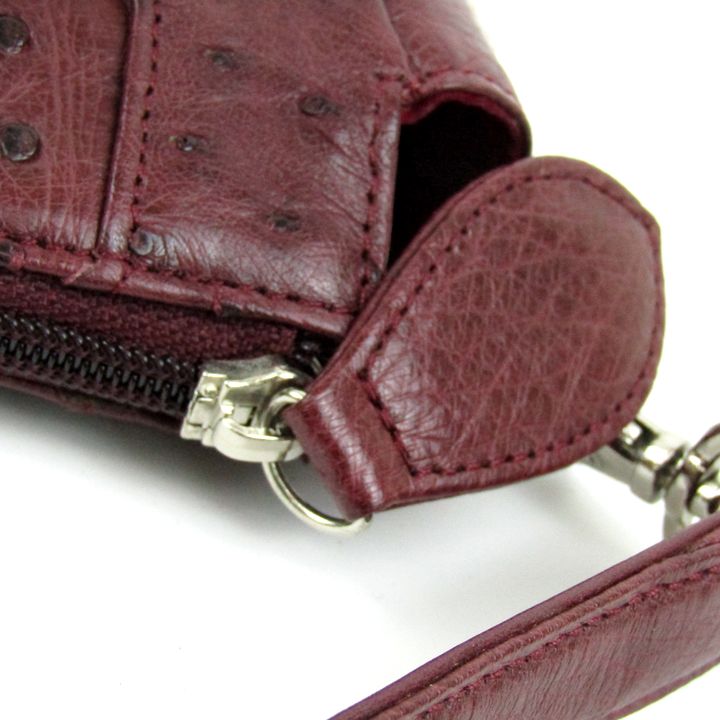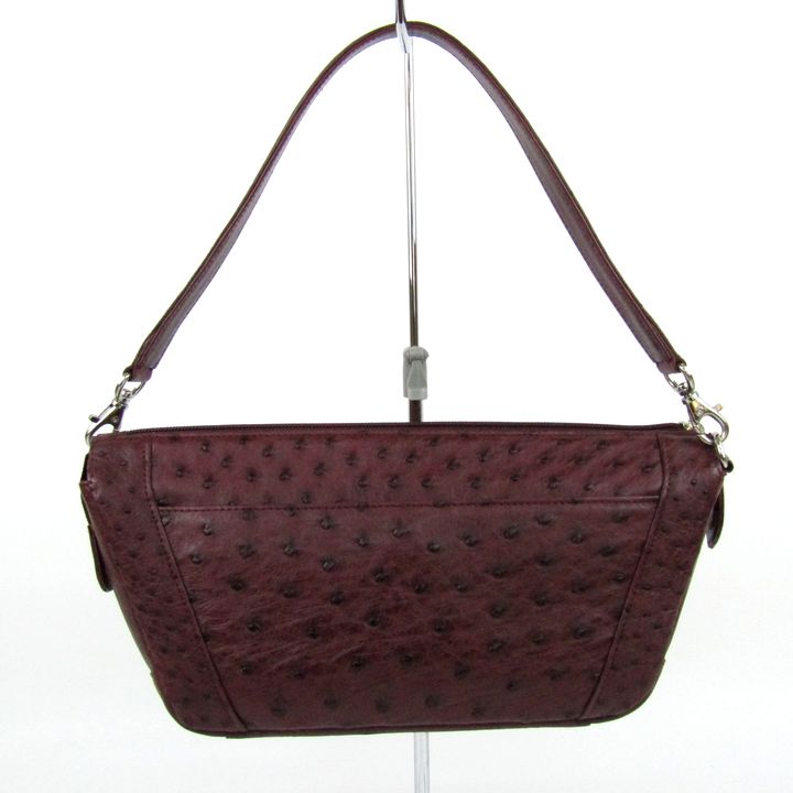 プレシャス オーストリッチ レザー ハンドバッグ アクセサリーポーチ 本革 鞄 レディース ワインレッド Precious 【中古】