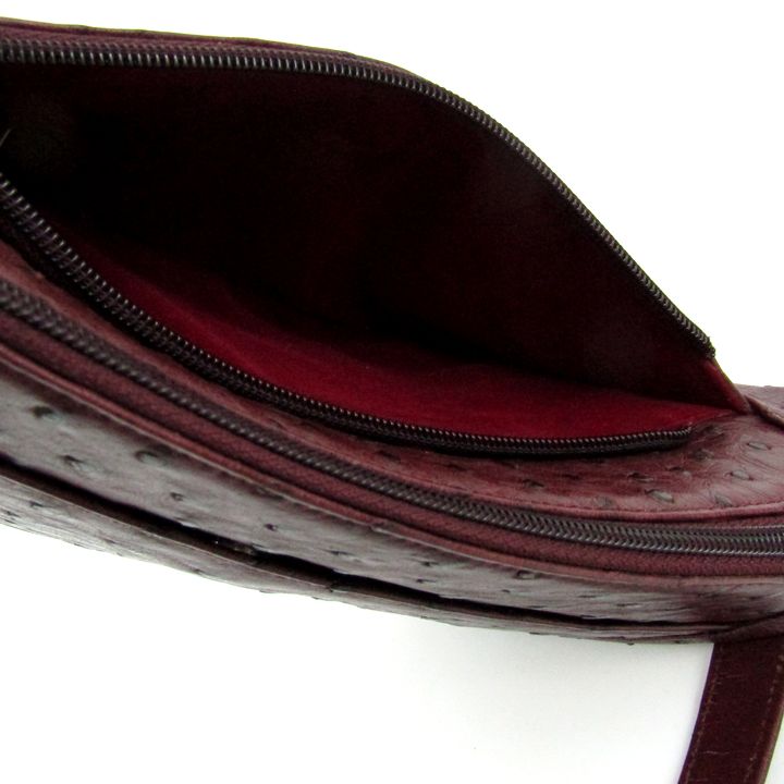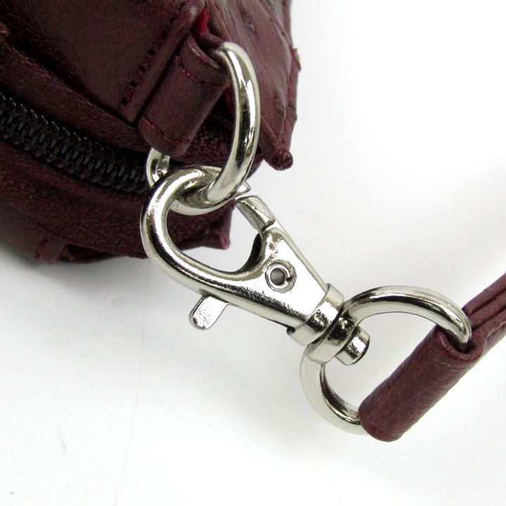 プレシャス オーストリッチ レザー ハンドバッグ アクセサリーポーチ 本革 鞄 レディース ワインレッド ...