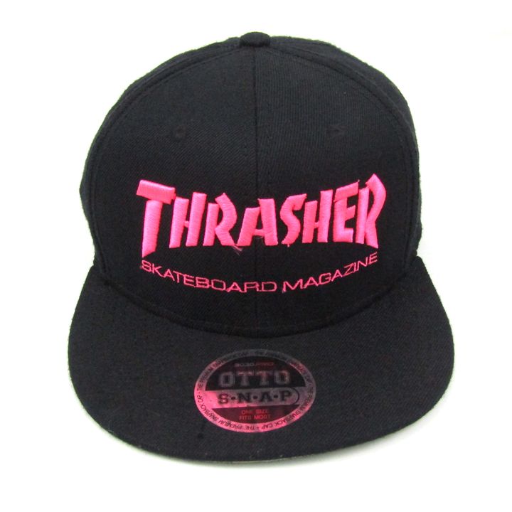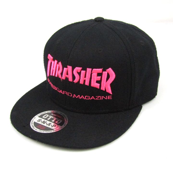 スラッシャー キャップ OTTO SNAP ロゴ スナップバック ウール混 帽子 メンズ ONEサイズ ブラック ピンク THRASHER 【中古】