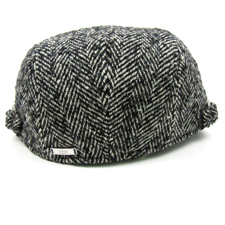 タケオキクチ ハンチング 未使用 ツイード ヘリンボーン柄 ウール混 帽子 ブランド メンズ ブラック TAK...