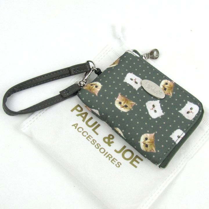 ポール&ジョー コインケース パスケース ヌネット&ジプシー ネコ 財布 ウォレット ブランド レディース グリーン PAUL&JOE 【中古】