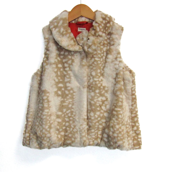 コンビミニ ベスト ジャケット アウター ファー フリース キッズ 女の子用 120サイズ 白×ベージュ Combi mini 【中古】