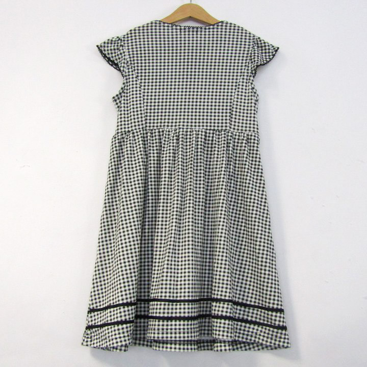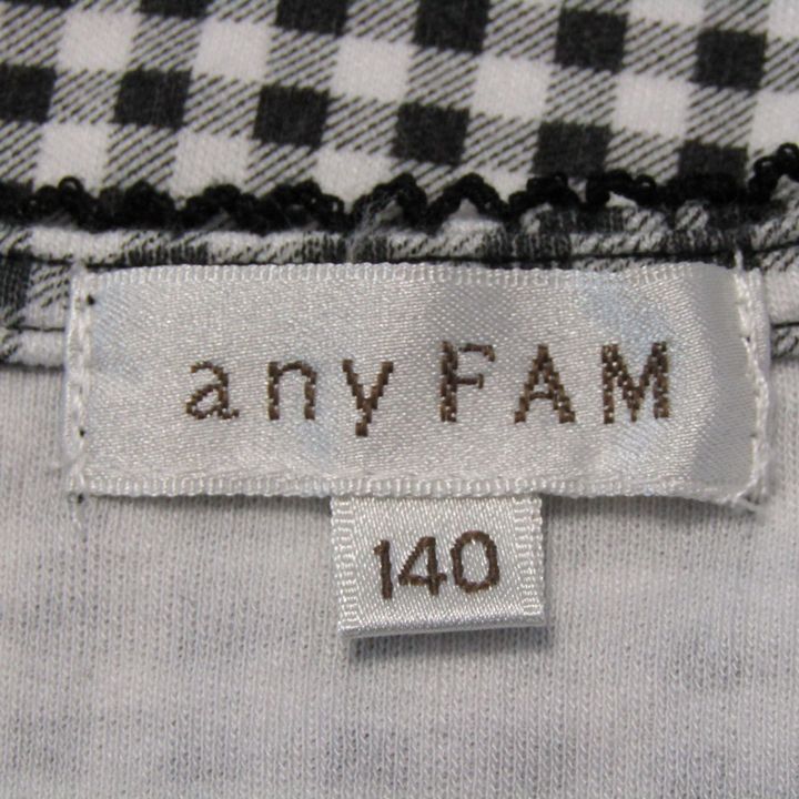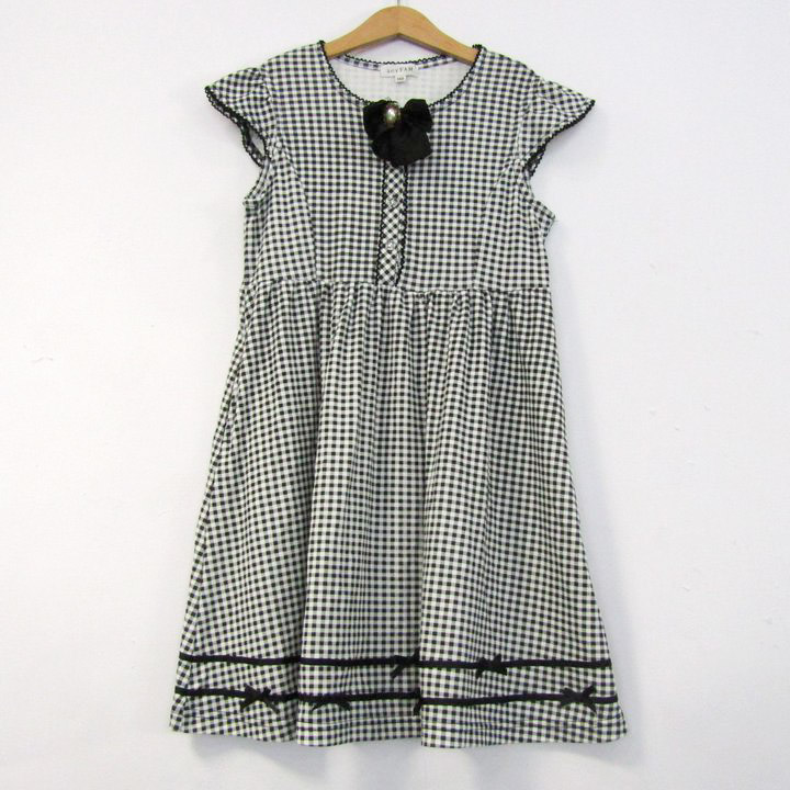 エニィファム ワンピース トップス フレンチ袖 チェック柄 キッズ 女の子用 140サイズ 黒×白 anyFAM 【中古】