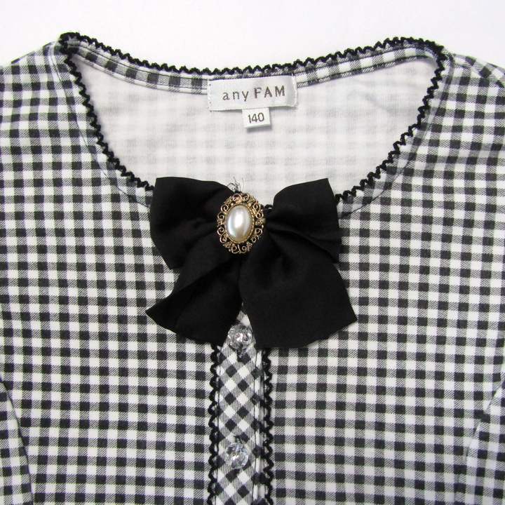 エニィファム ワンピース トップス フレンチ袖 チェック柄 キッズ 女の子用 140サイズ 黒×白 anyFAM 【...