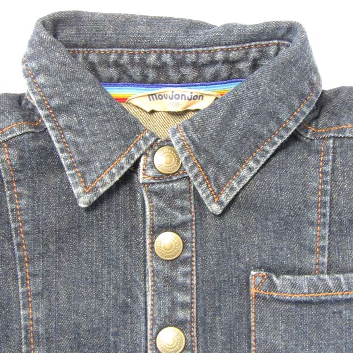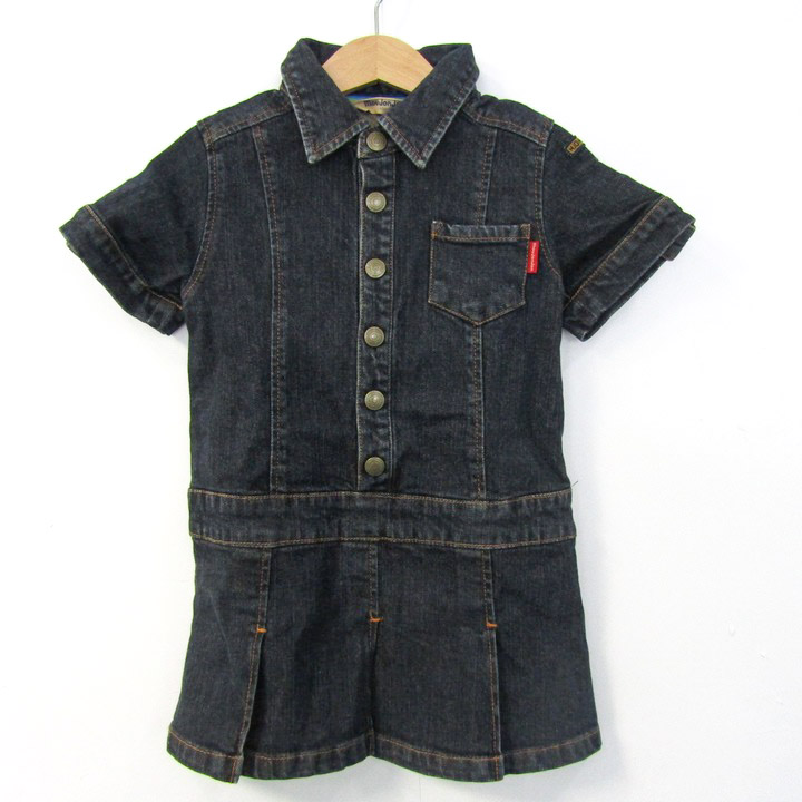 ムージョンジョン ワンピース トップス 半袖 シャツワンピ キッズ 女の子用 100サイズ デニム moujonjon 【中古】
