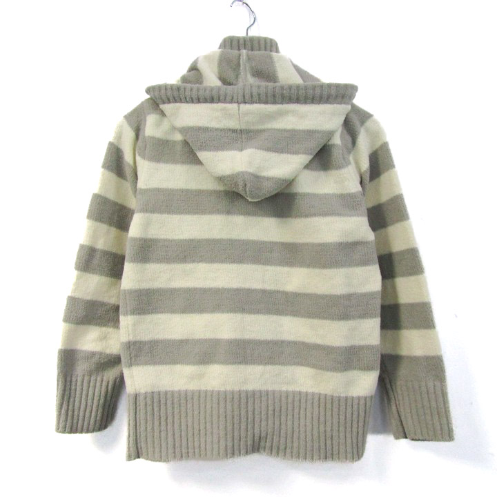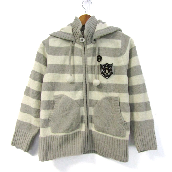 ポンポネット パーカー トップス ジップアップ ボーダー柄 キッズ 女の子用 L(160)サイズ グレー×オフホワイト pom ponette 【中古】