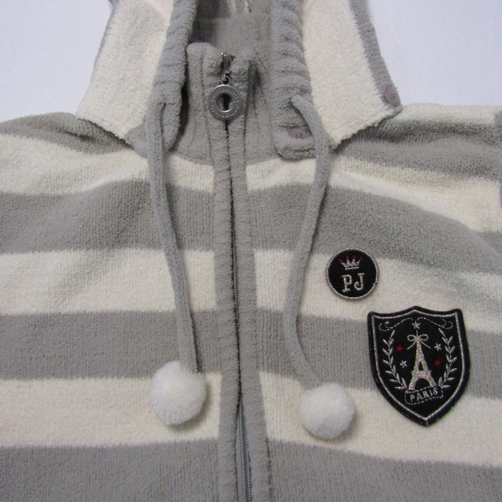 ポンポネット パーカー トップス ジップアップ ボーダー柄 キッズ 女の子用 L(160)サイズ グレー×オフホ...