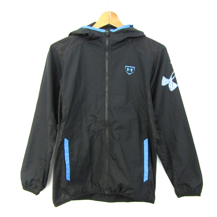 アンダーアーマー パーカー トップス ウィンドブレーカー スポーツウエア キッズ 男の子用 YXLサイズ 黒×ブルー UNDER ARMOUR 【中古】
